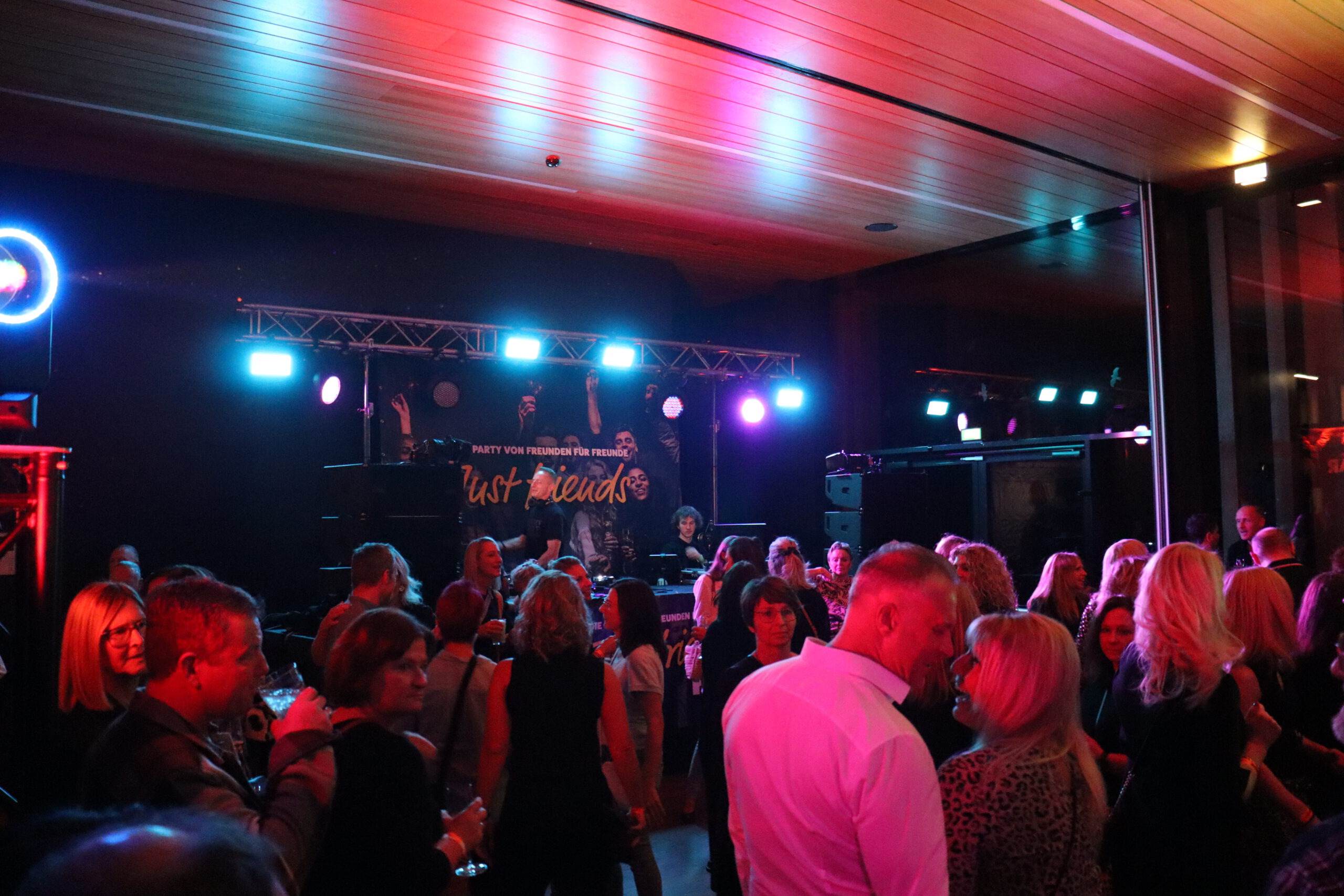 Jugendraum der Weidener Mehrzweckhalle, Evangelisches Vereinshaus in Weiden, die Mensa und der Business Saal der Ostbayerischen Technischen Hochschule (OTH) Weiden, der Vorraum der Max-Reger Halle Weiden oder doch das Schätzlerbad Weiden – das sind die Locations, wo „Just friends“ e. V. in seiner bisherigen Geschichte seit 2017 seine Feten von Freunden für Freunde veranstaltet.  Zuletzt fanden bei der 13.0 Auflage in 2025 dabei weit über 500 Gäste den Weg in den Saal der Business School, die sich inzwischen als perfekter Ort herauskristallisiert hat.